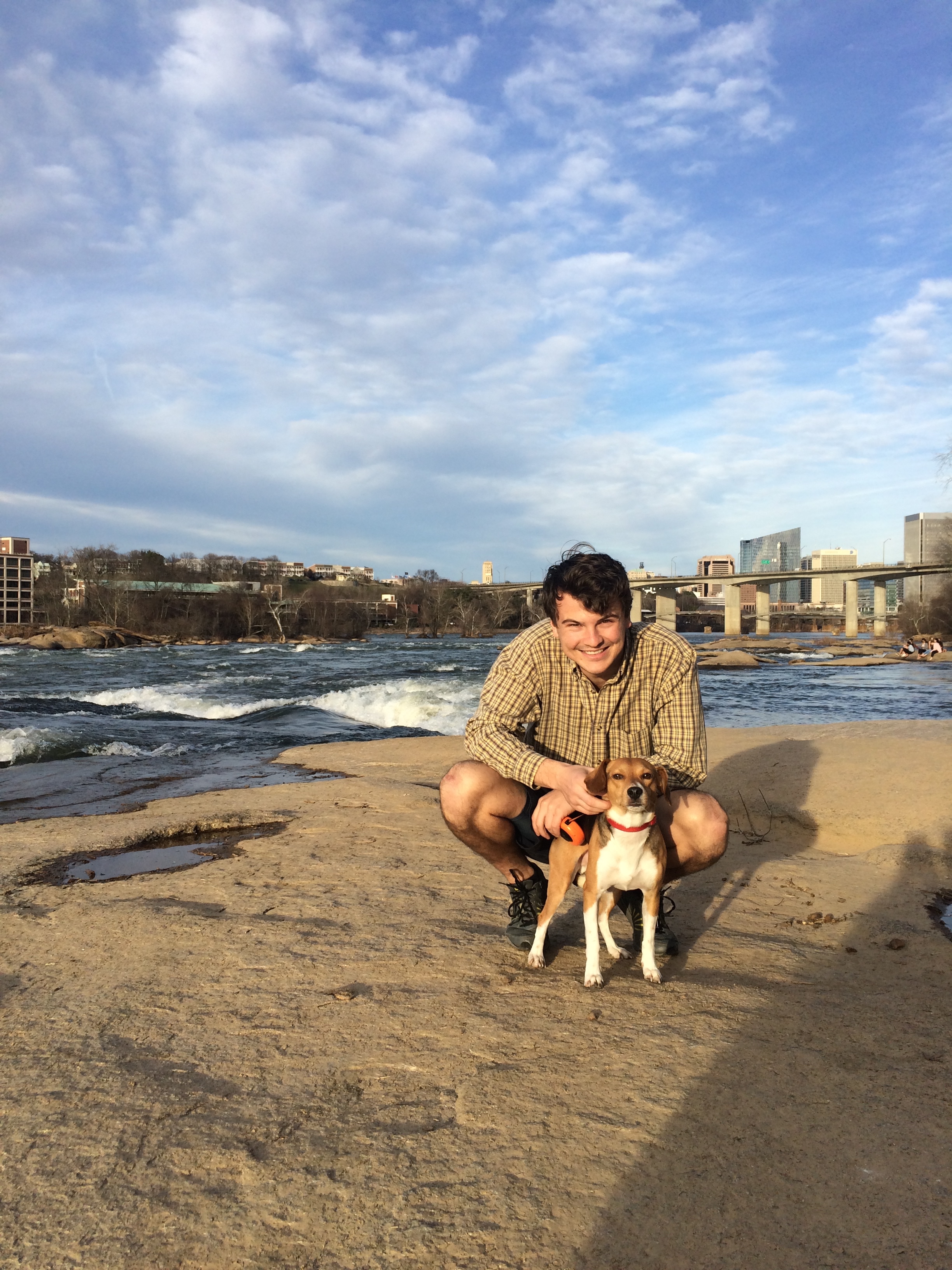 He has a long list of things that scare him. These things include water (lakes, rivers, rain, puddles, you name it), boats (for obvious reasons), crossing busy streets, sudden movements, other scary dogs that try to eat him, brooms, large unknown objects, anything remote-controlled, playing fetch, balls in general, abandonment, and being alone forever.